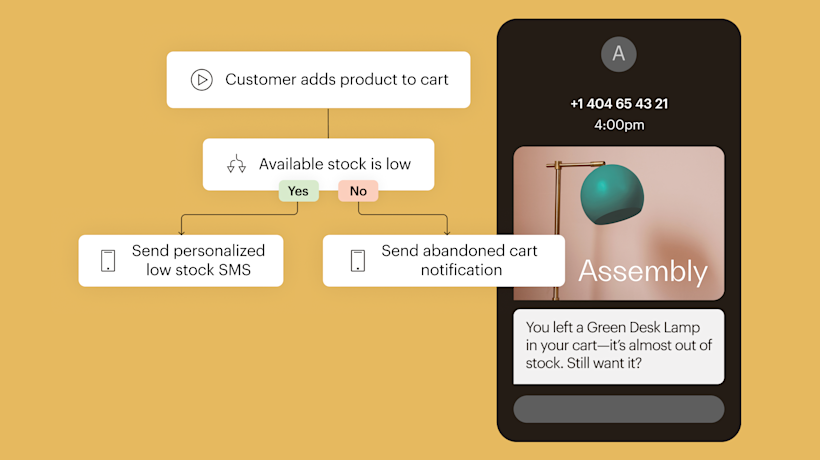Pull in real-time e-commerce data—like product names and links—to deliver personalized, timely messages.