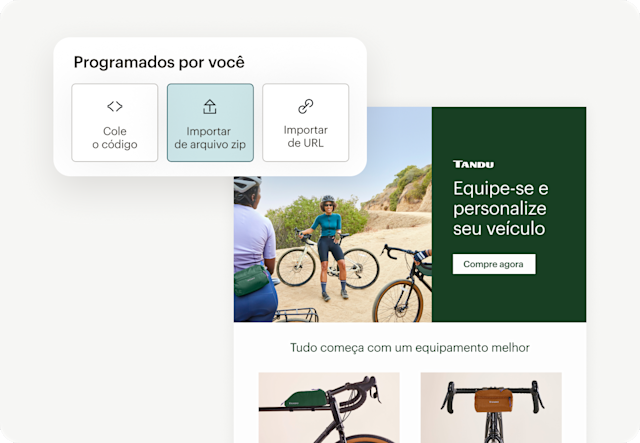 • Crie designs personalizados para suas campanhas no Canva e sincronize-os facilmente com seu Estúdio de Conteúdo do Mailchimp para criar designs com recurso de arrastar e soltar, da ideia à publicação.